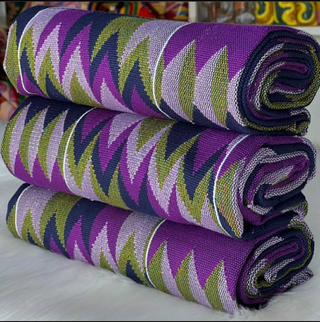 Elevate your next creation with “Royal Bloom,” a bold and elegant Kente fabric handwoven in Ghana. Featuring a striking zig-zag motif in royal purple, olive green, midnight navy, and soft lilac, this pattern symbolizes growth, dignity, and power in unity. The design brings modern energy to traditional weaving, making it perfect for statement garments, headwraps, upholstery, or cultural wear.
