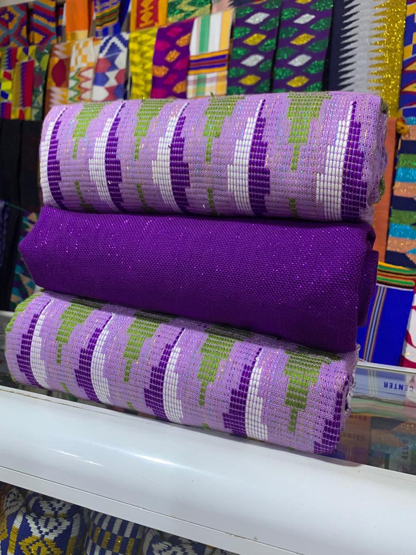 Royal Lavender Kente Fabric – Lilac, Olive & Ivory